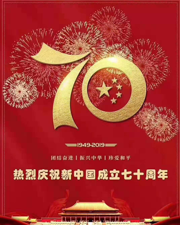 鞏義市華盛銘重工機械廠董事長--范春明攜全體員工熱烈慶祝中華人民共和國成立70周年!